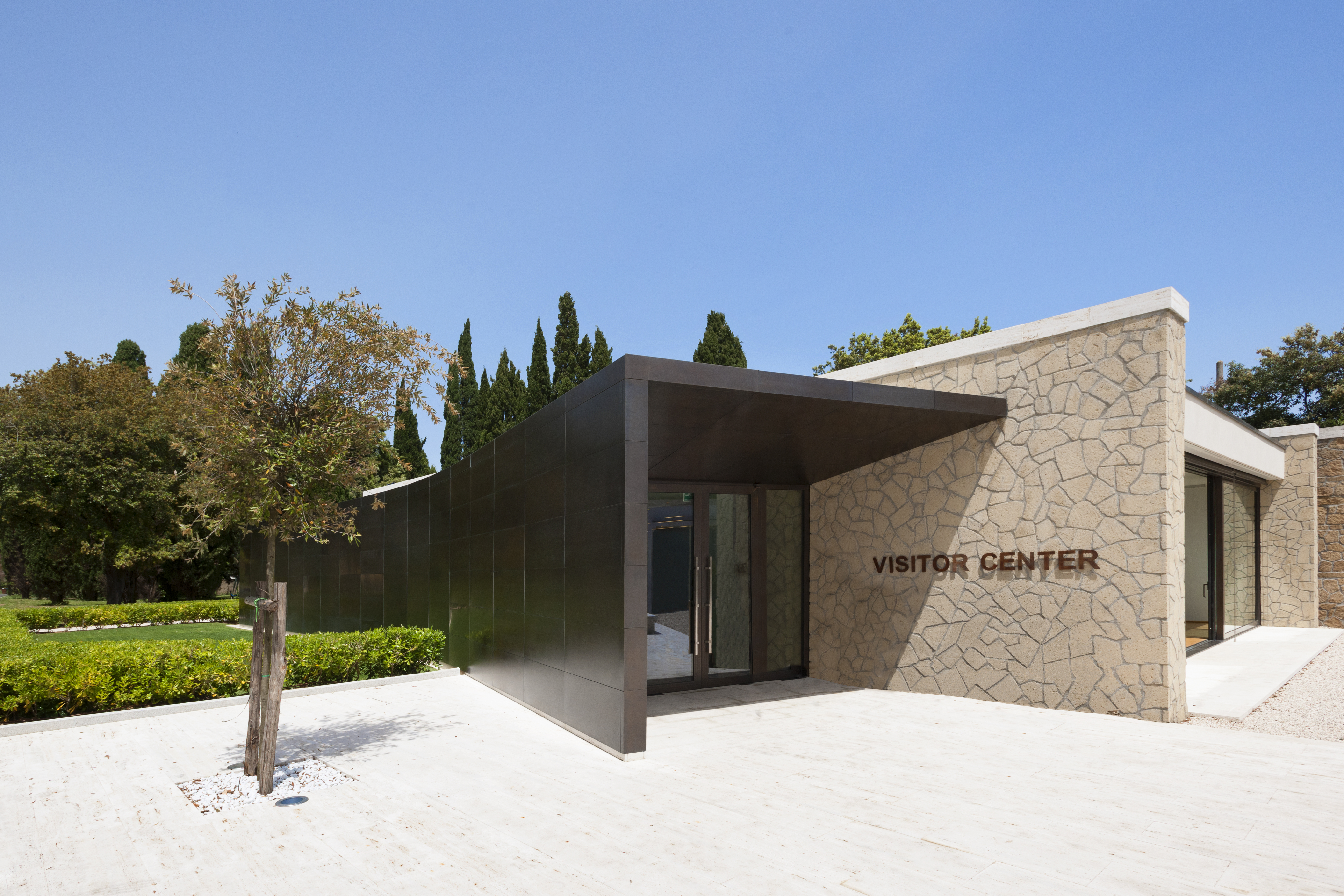 Nuovo centro visitatori Cimitero Militare Americano a Nettuno, Roma.